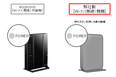 WG2600HSと弊社製Wi-Fi(無線)親機を「WPS」で接続します。