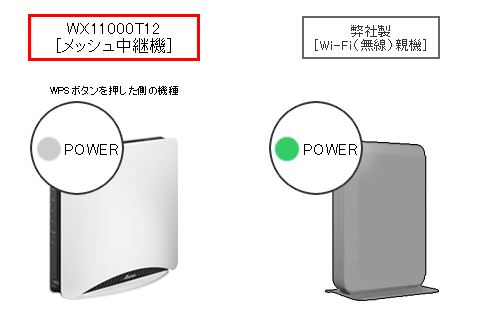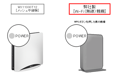 WX11000T12のPOWERランプ点滅後、1分以内に弊社製メッシュ親機の「WPSボタン」を長押ししてください。