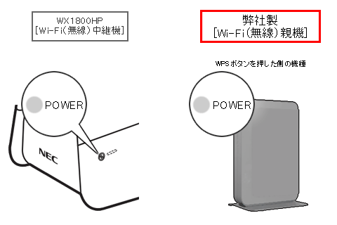 WX1800HPのPOWERランプ点滅後、1分以内に弊社製Wi-Fi(無線)親機の「WPSボタン」を長押ししてください。