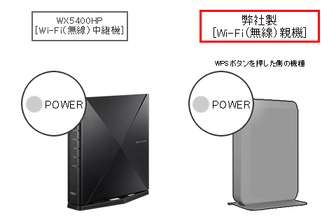 WX5400HPのPOWERランプ点滅後、1分以内に弊社製Wi-Fi(無線)親機の「WPSボタン」を長押ししてください。