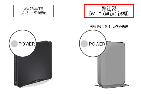 WX7800T8のPOWERランプ点滅後、1分以内に弊社製メッシュ親機の「WPSボタン」を長押ししてください。