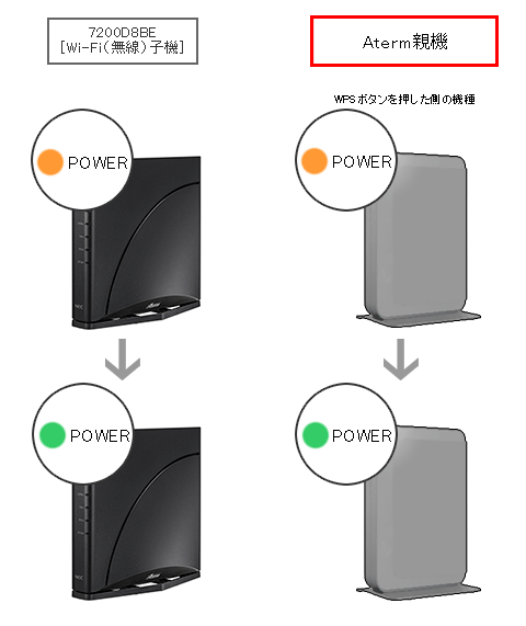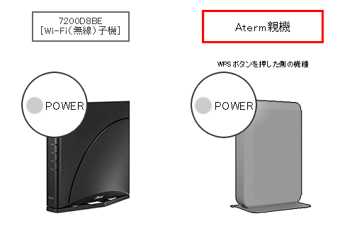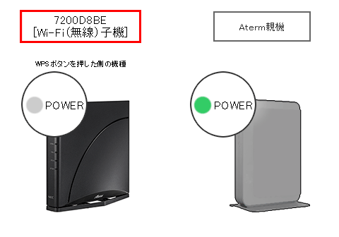 7200D8BEのPOWERランプ点滅後、1分以内にAterm親機の「WPSボタン」を長押ししてください。