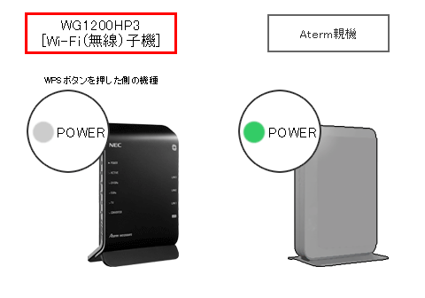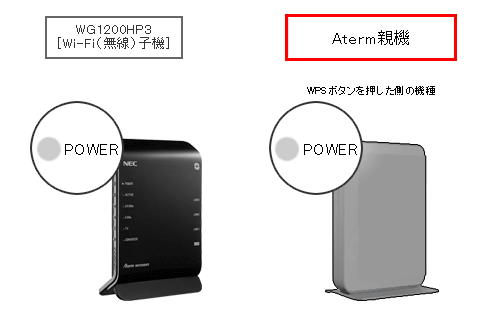 WG1200HP3のPOWERランプ点滅後、1分以内にAterm親機の「WPSボタン」を長押ししてください。