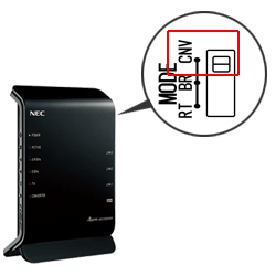 電源を切った状態で、WG1200HS4の背面にある「RT/BR/CNVモード切替スイッチ」を「CNV」に切り替えてください。