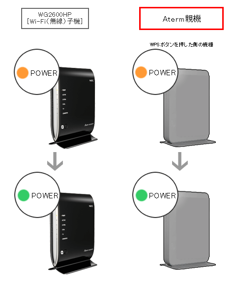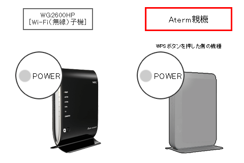 WG2600HPのPOWERランプ点滅後、1分以内にAterm親機の「WPSボタン」を長押ししてください。