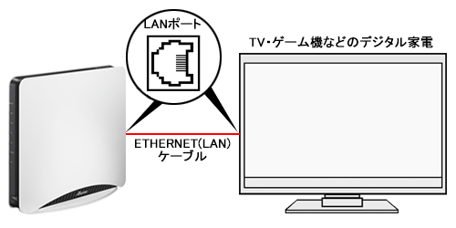 WX11000T12のLANポートと装置(テレビ・プリンタ・ゲーム機などのネットワーク家電)のLANポートを、ETHERNET(LAN)ケーブルで接続してください。