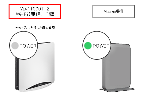 WX11000T12のPOWERランプ点滅後、1分以内にAterm親機の「WPSボタン」を長押ししてください。