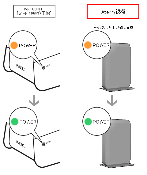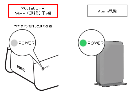 WX1800HPのPOWERランプ点滅後、1分以内にAterm親機の「WPSボタン」を長押ししてください。