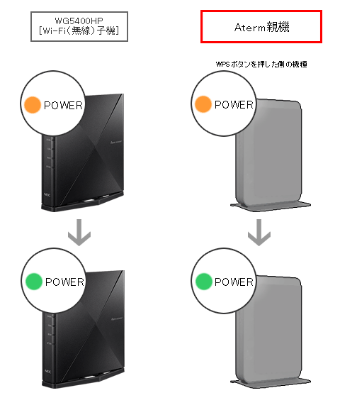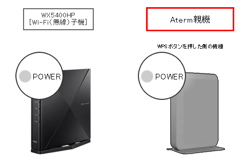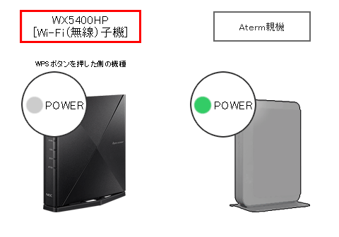 WX5400HPのPOWERランプ点滅後、1分以内にAterm親機の「WPSボタン」を長押ししてください。