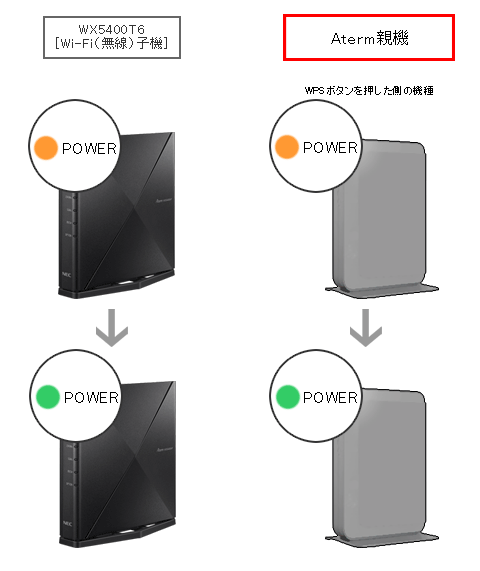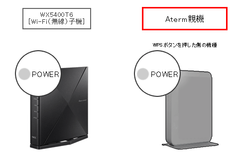 WX5400T6のPOWERランプ点滅後、1分以内にAterm親機の「WPSボタン」を長押ししてください。
