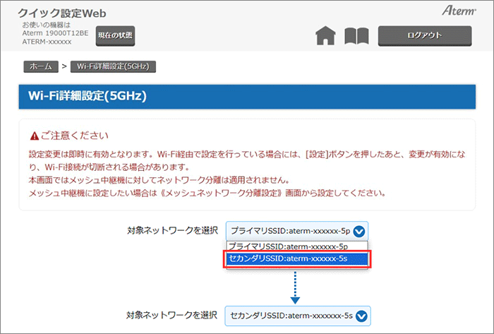 「セカンダリSSID」を選択してください。