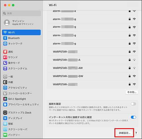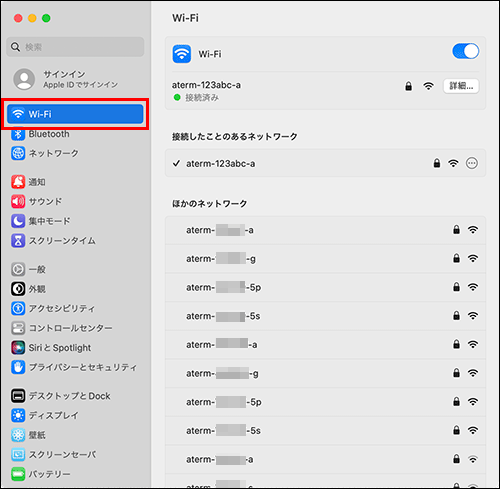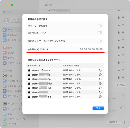 『Wi-Fi MACアドレス』より、MACアドレスの確認が行えます。