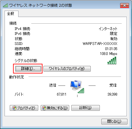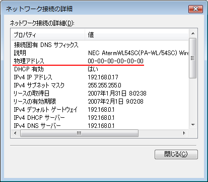 『物理 アドレス』より、MACアドレスの確認が行えます。