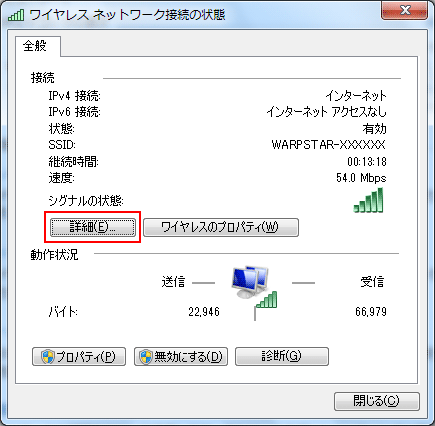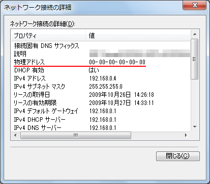『物理 アドレス』より、MACアドレスの確認が行えます。