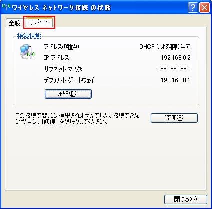 【詳細】を押すと、『物理 アドレス』より、MACアドレスの確認が行えます。
