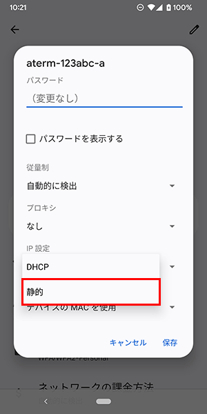 IP設定で「静的」を選択してください。