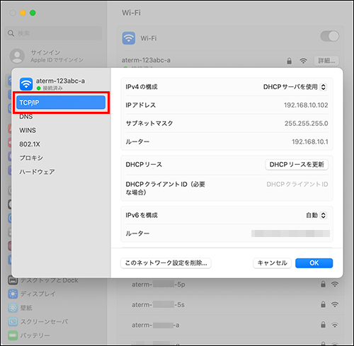 接続済みのネットワーク名(SSID)の【詳細...】を押してください。