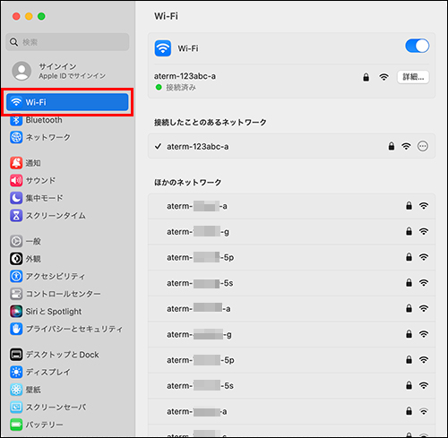 左メニューから「Wi-Fi」を選択してください。