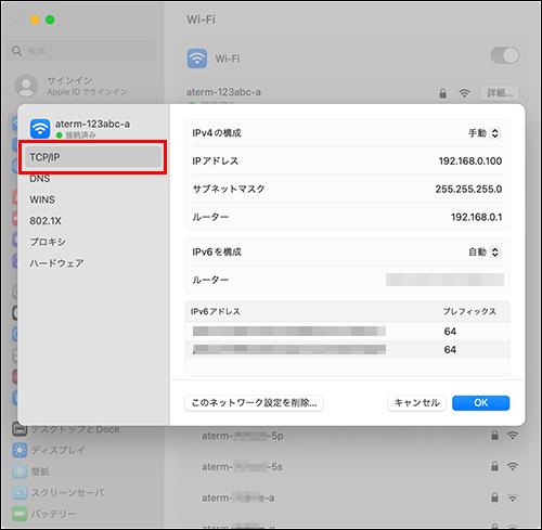 「TCP/IP」を選択してください。