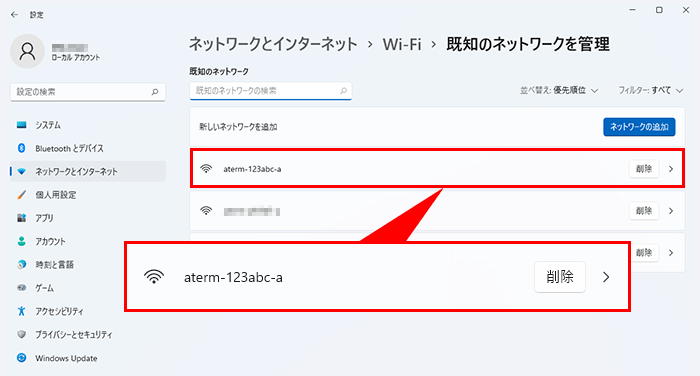 Wi-Fi接続を行っているAtermのネットワーク名(SSID)を選択してください。
