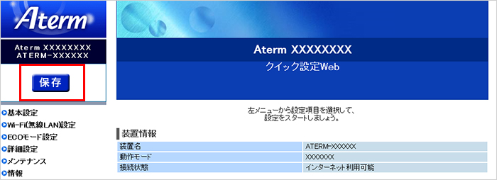 左メニューの【保存】ボタンを押して、設定を保存してください。