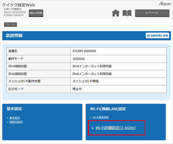 『Wi-Fi(無線LAN)設定』-『Wi-Fi詳細設定(2.4GHz)』を選択してください。