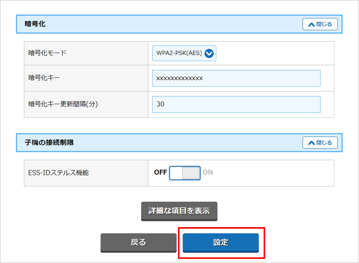 【設定】ボタンを押してください。
