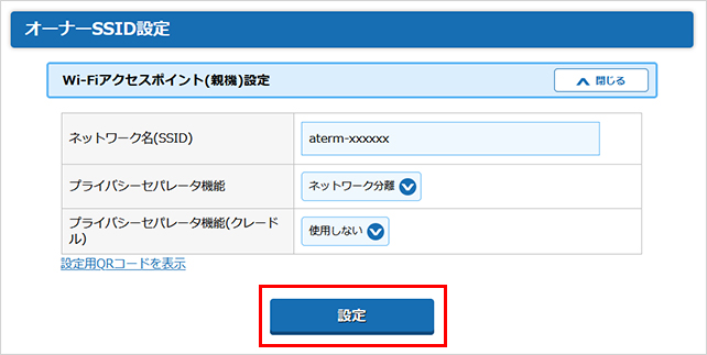 『オーナーSSID・ゲストSSID共通設定/オーナーSSID設定』画面が開きます。