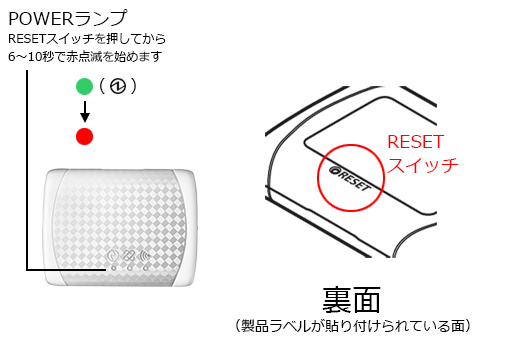 Aterm本体の裏面にあるRESETスイッチを、つまようじの先で押し続け(*1)、POWERランプが赤点滅を始めたら放してください。