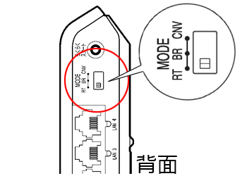 ここから先の手順に入る前に、Aterm本体の背面にあるモード切替スイッチ(MODE)の位置をご確認ください。