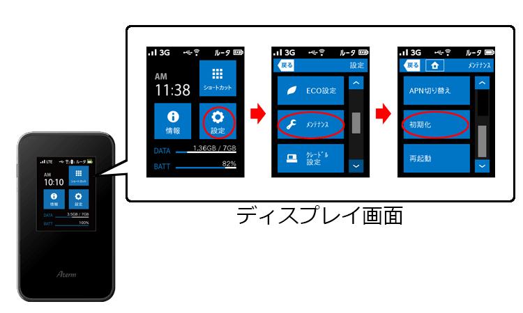 「設定」-「メンテナンス」-「初期化」をタップします。