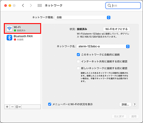 左のメニューから[Wi-Fi](OS v10.5/v10.6では[AirMac])を選択してください。