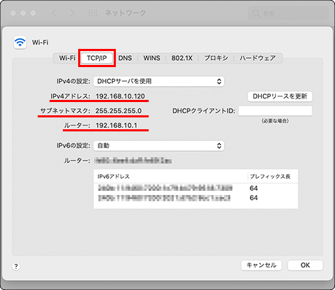 IPv6でインターネットに接続できている場合は、IPv6アドレスも確認できます。