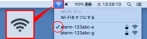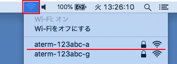 Mac本体のメニューバーにある『Wi-Fi』アイコンをクリックしてください。