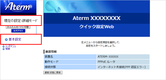 クイック設定Webのメニューから、詳細モードの『基本設定』を選択してください。