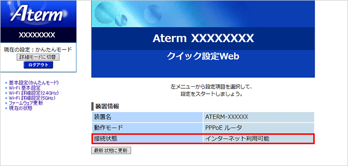 接続状態に「インターネット利用可能」と表示されていることをご確認ください。