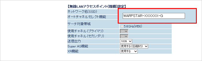 『無線LANアクセスポイント(親機)設定』の「ネットワーク名(SSID)」から、変更後のネットワーク名(SSID)の確認が行えます。