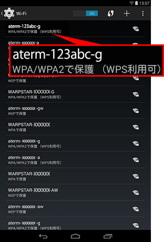 手順冒頭の事前準備で確認したAterm親機のネットワーク名(SSID)をタップしてください。