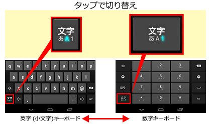 英字[小文字]キーボードから数字キーボードへの切り替え
