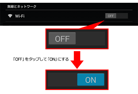 Wi-Fiが「OFF」の場合は、「OFF」をタップして「ON」にしてください。