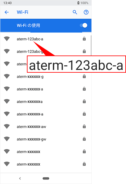 手順冒頭の事前準備で確認したAterm親機のネットワーク名(SSID)をタップしてください。