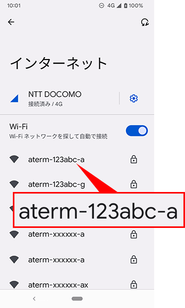 手順冒頭の事前準備で確認したAterm親機のネットワーク名(SSID)をタップしてください。