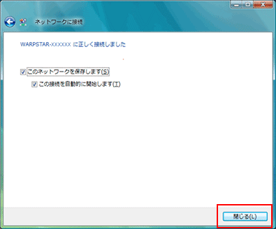 しばらくして「正しく接続しました」と表示されましたら、【閉じる】ボタンを押してください。