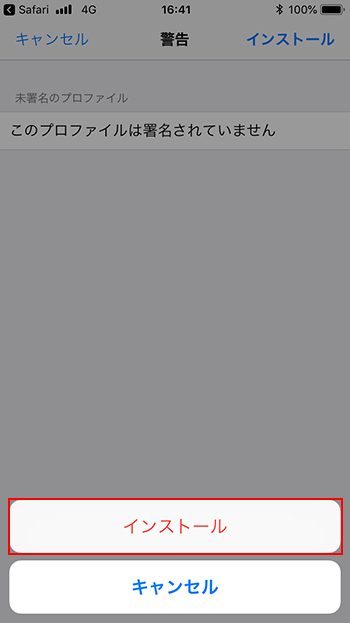 警告がでますが、そのまま【インストール】をタップしてください。