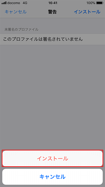 この時点では、プロファイルのダウンロードのみが完了した状態で、インストールは完了していません。