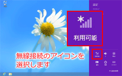 デスクトップ右下の通知領域に表示されている『ネットワーク』アイコンをクリックしてください。