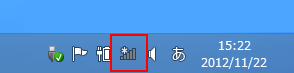 デスクトップ右下の通知領域に表示されている『ネットワーク』アイコンが、以下のように表示されましたら設定は完了です。