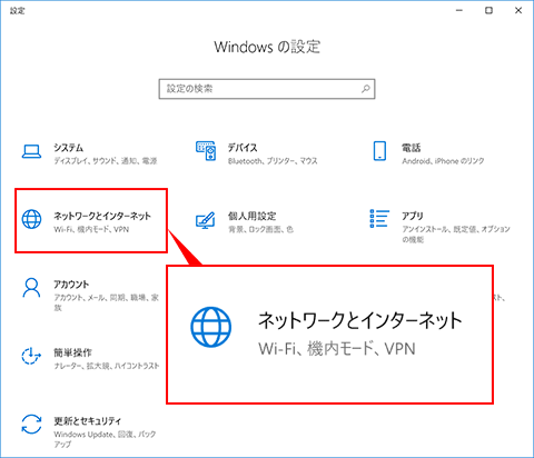「ネットワークとインターネット」を選択してください。
