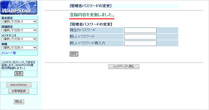 クイック設定Webのログインパスワード(管理者パスワード)変更は、クイック設定Webで行います。