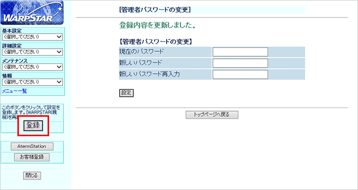 クイック設定Webのメニューから、【登録】ボタンを押してください。